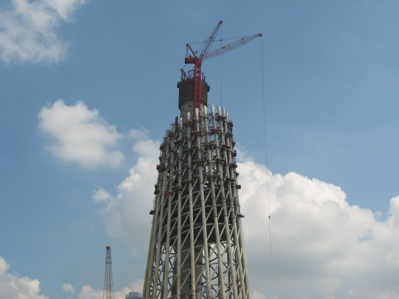 該塔于2005年底開始動(dòng)工,到現(xiàn)在為止,主塔已經(jīng)有100多米的高度,為了保證施工的安全,建設(shè)方(廣州市政府)決定在塔頂施工處安裝全實(shí)時(shí)監(jiān)控?cái)z像頭,同時(shí),把現(xiàn)場(chǎng)的圖像傳到塔下200米左右的監(jiān)控中心,大宏科技的技術(shù)工程師在經(jīng)過現(xiàn)場(chǎng)考察后,設(shè)計(jì)了一套行之有效的方案,保證了圖像實(shí)時(shí)的傳輸回地面指揮中心。
